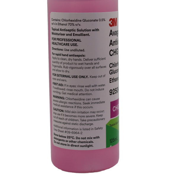 ? Alcohol and chlorhexidine formula for ongoing bactericidal effect.