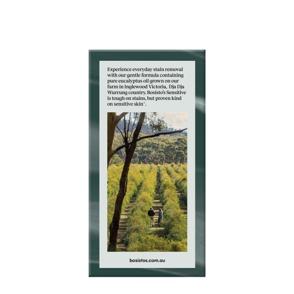 Experience everyday stain removal with our gentle formula containing pure eucalyptus oil grown on our farm in Inglewood Victoria, Dja Dja Wurrung country. Bosisto’s Sensitive is tough on stains, but proven kind on sensitive skin^.