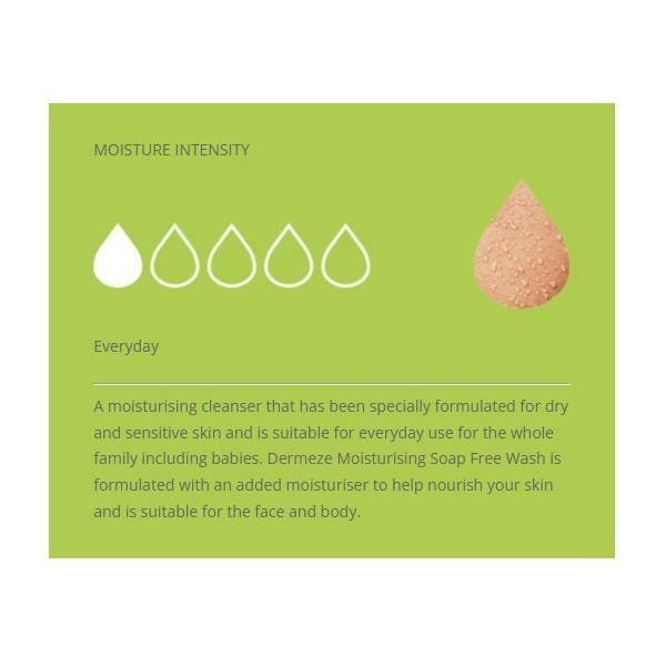 A moisturising cleanser that has been specially formulated for dry and sensitive skin and is suitable for everyday use for the whole family including babies. Dermeze Moisturising Soap Free Wash is formulated with an added moisturiser to help nourish your skin and is suitable for the face and body.
