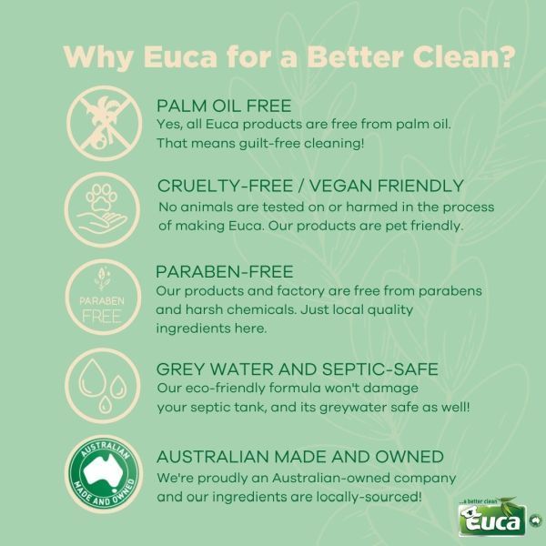 Euca Laundry Sanitiser 1L with Broad Spectrum Bacteriacide is not made using any nastic, toxic products.