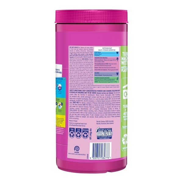 Vanish NapiSan Oxi Action Fabric Stain Remover Powder is suitable for both colours and whites. For best result: Remove all loose matter Treat all stains as soon as possible Before soaking, dissolve powder fully and completely submerge item in solution for even cleaning results