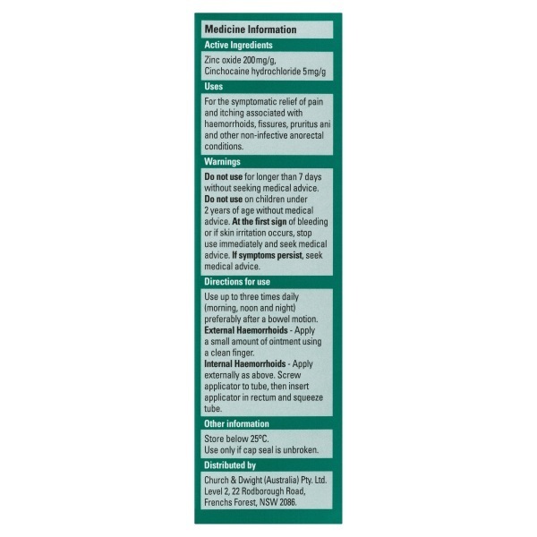 For the symptomatic relief of pain and itching associated with haemorrhoids, fissures, pruritus ani and other non-infective anorectal conditions.